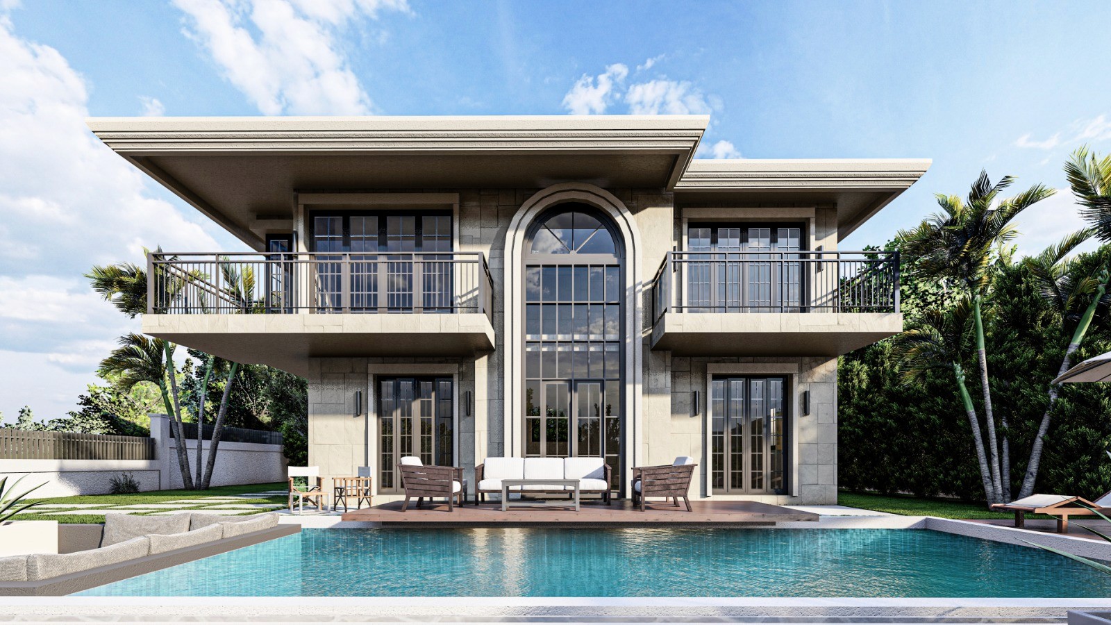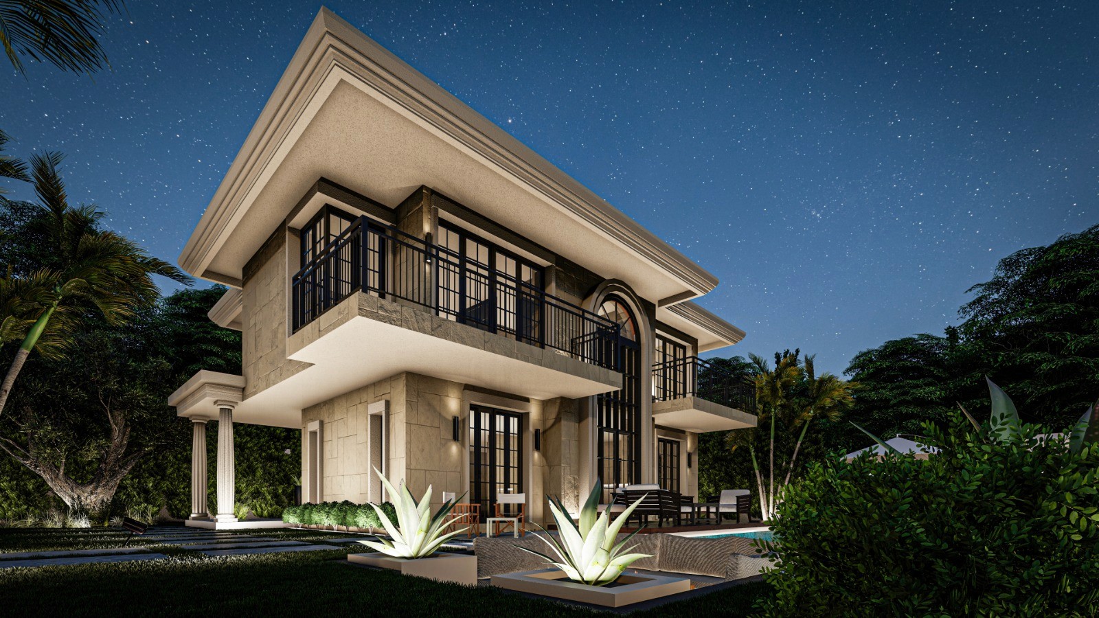 Step into the future with this beautifully crafted luxury home, where modern architecture meets timeless elegance. Featuring expansive living spaces, sophisticated finishes, and seamless integration of indoor and outdoor living, this home is designed to impress. With its grand double-height windows, clean stone facades, and meticulously landscaped gardens, every corner of this property has been thoughtfully designed. Whether it’s the stunning pool area, the spacious balconies, or the well-lit exteriors that highlight the architecture, this home exudes luxury and style at every turn.
