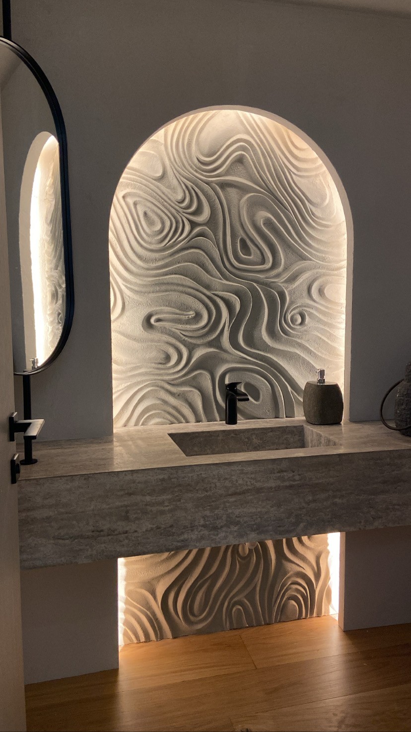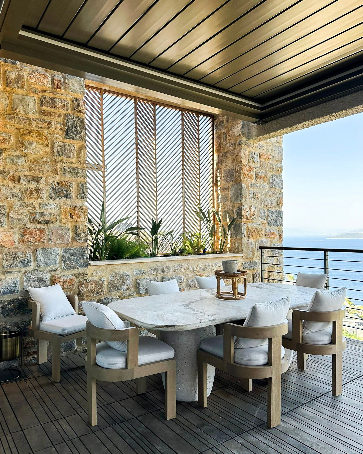 In this project where natural textures meet modern design, every detail reflects a refined sense of aesthetics. From the bathroom, where terrazzo surfaces blend with vibrant colors, to the bedroom dominated by warm wood tones, each area creates a serene living atmosphere. In the kitchen, the elegance of natural stone takes the spotlight, while the living room and terrace offer comfortable seating areas designed for enjoying moments in harmony with nature. The children’s play corner adds an energetic touch with playful details, and the custom lighting elements bring a sophisticated character to the interiors. Combining natural beauty, elegance, and functionality, this design gives the living space both a stylish and welcoming identity.